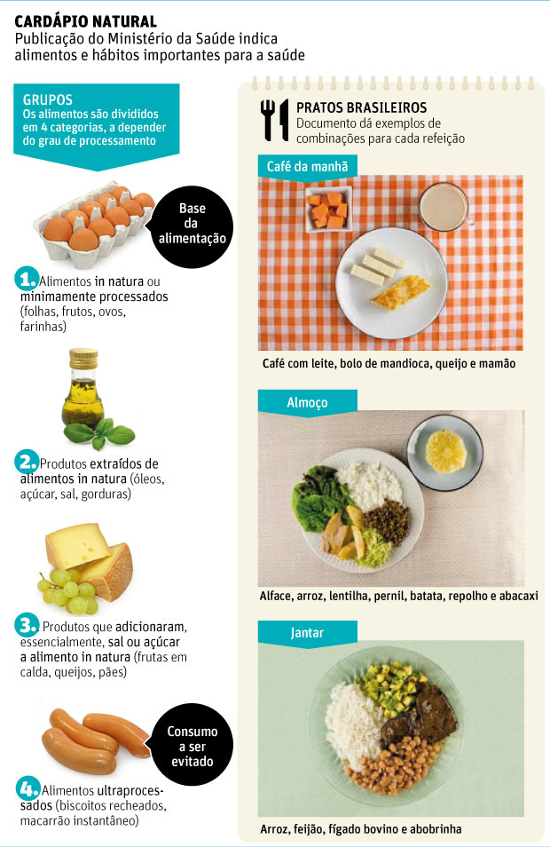 O documento prioriza o consumo de alimentos in natura ou minimamente processados, e atualiza recomendações do Ministério da Saúde sobre o que deve ser levado à mesa. O último guia havia sido elaborado em 2006.