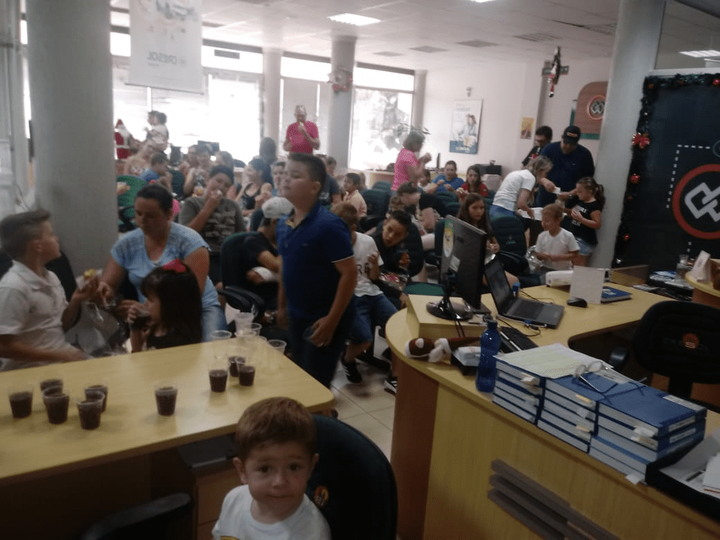 O objetivo era fazer um grande festa de confraternização destes pequenos associados, na oportunidade em torno de 40 crianças acompanhados dos pais estiveram participando dentro do ambiente da cooperativa de brincadeiras, filmes, gincanas, e em um momento especial teve a presença do papai noel que distribuiu um presente para cada um.