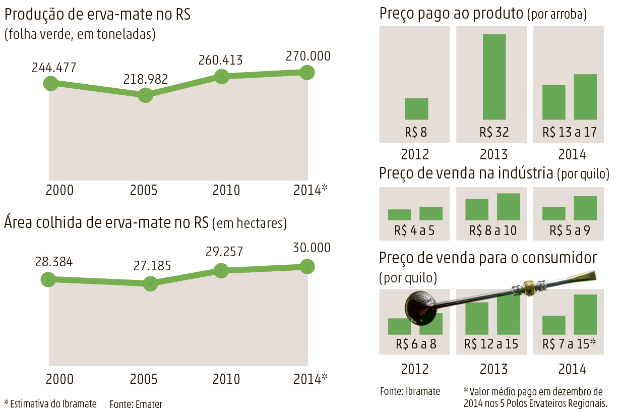 A escassez de matéria-prima em 2013, reflexo do baixo valor pago aos produtores por muitos anos e dos poucos investimentos na cultura, fez o preço da erva-mate aumentar em mais de 200% para os consumidores. No campo, os agricultores viram a arroba da folha (equivalente a 15 quilos) passar de R$ 8 para R$ 32 naquele período. Com o quilo do produto custando mais de R$ 15 no varejo, os consumidores adaptaram seus hábitos.